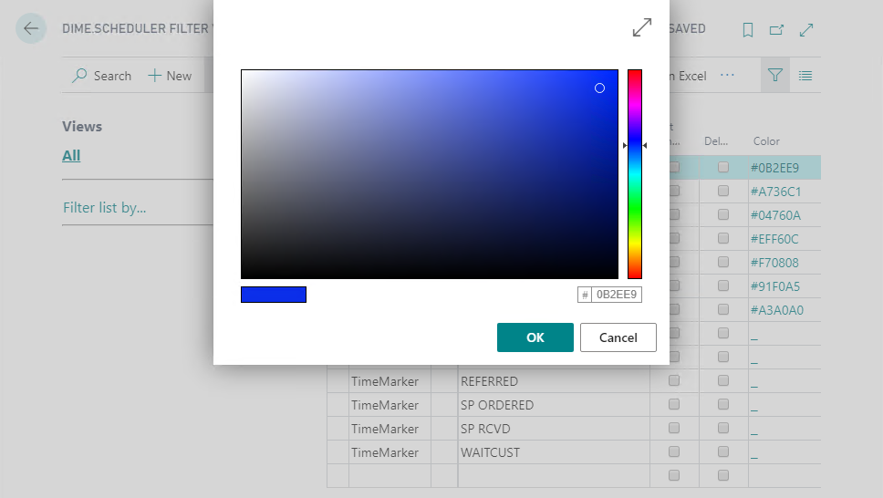 In this list, it is also possible to define categories, time markers and pins inside BC, and even assign their color to it. In the DS filter value page, click the column in the 'Color' field to open the color picker: