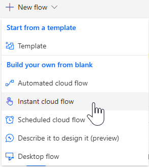 For the sake of simplicity, create a new Instant cloud flow: