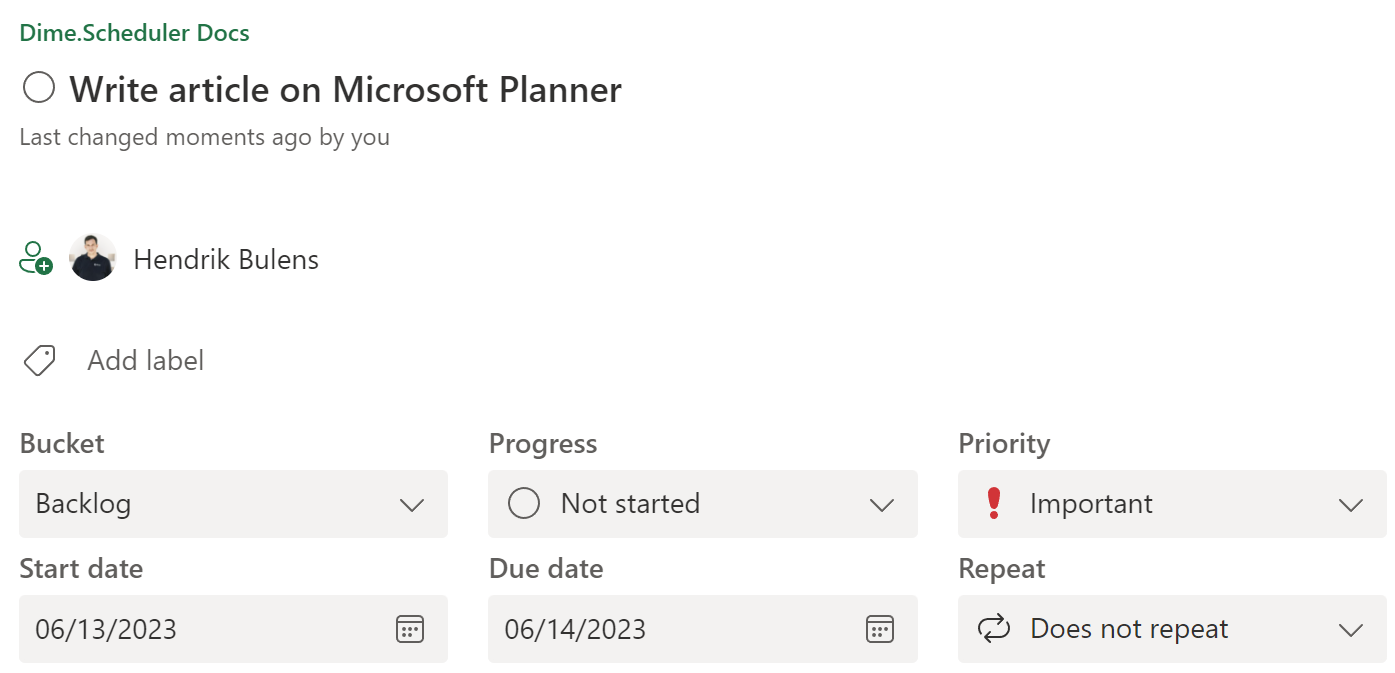 Now that the Power Automate flow and Dime.Scheduler connector are set up, it's time to test! Pick any of the tasks, drop it on the planning board and have a look at the Power Automate flow history. When all went well, we should see that the flow has updated the Planner task successfully: