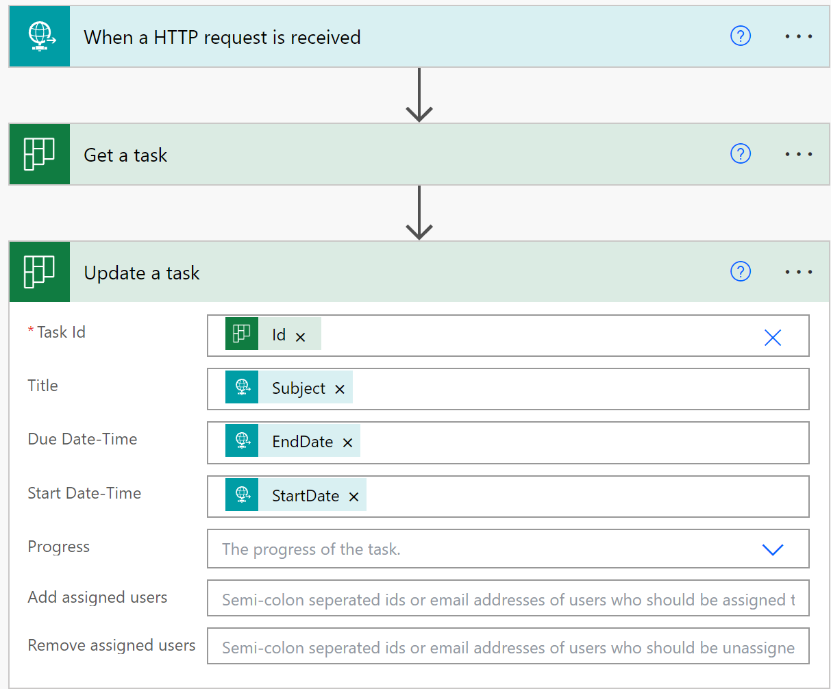 Once more, the Power Platform is shining bright as it is possible to invoke a Power Automate flow by posting an HTTP request, which is what we'll do in this post. In this example, we are going to go back to the Planner task and update the start and end time fields, as well as update the assigned people to the task: